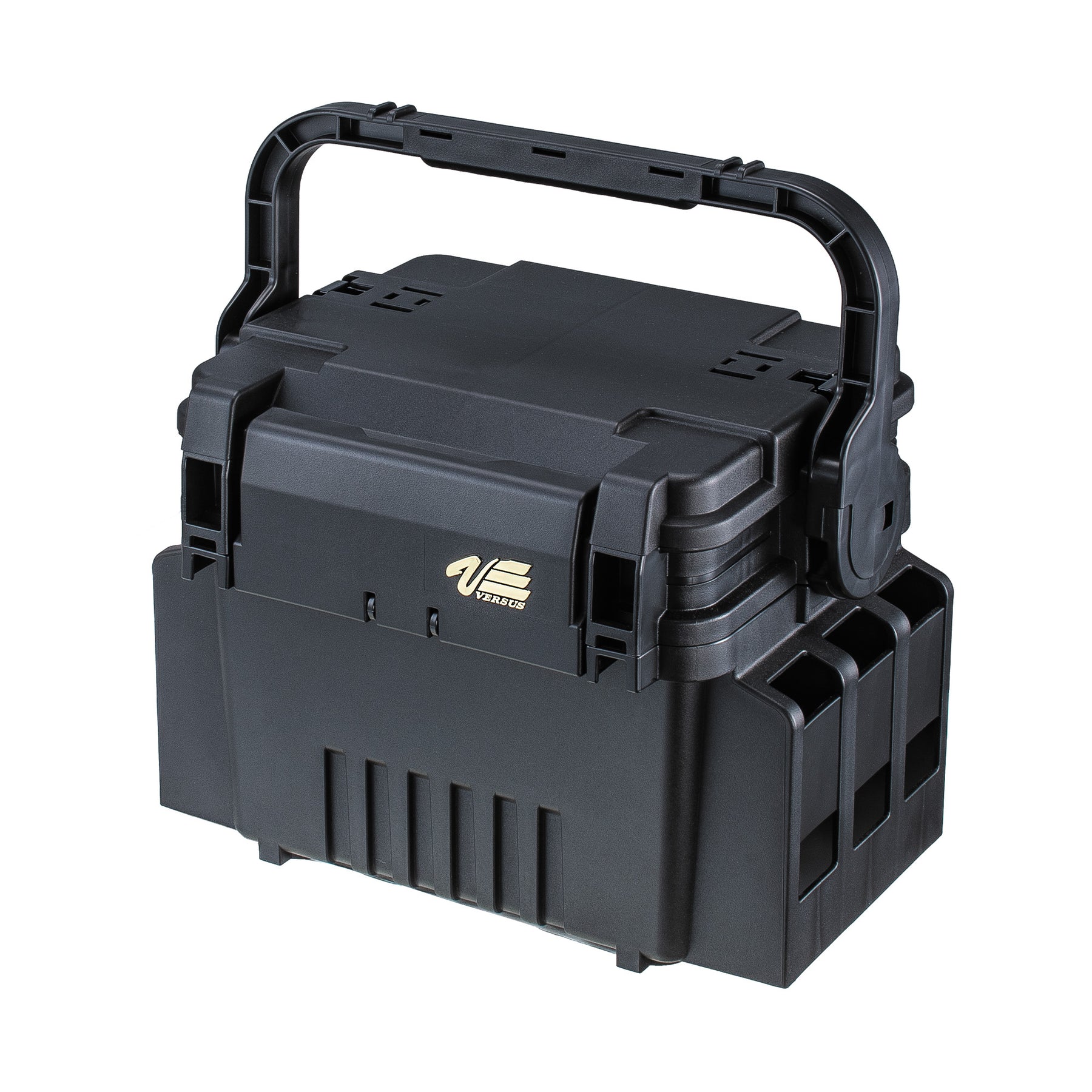 Premium plastic tackle box with a large storage area inside the box that comes with two removable dividers that split up the compartment. Inside the lid of this tackle box you will also find another storage area. This quick grab section has 6 removable dividers so users can create custom compartments for their fishing tackle and supplies. This hinged lid tackle box also has a secure plastic flip latch that keeps the lid shut during transportation and a large comfortable carrying handle so you can get it to the boat as easily as possible.